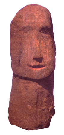 One of the more interesting finds at Gottschall has been a sculpted sandstone head with a long neck, about the size of a loaf of bread.1 It is complete with eyes, nose (with nostrils), and an open mouth, the interior of which has been painted orange-red.