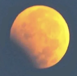 "on her face" — so after the urination episode, there should have been a red mark on the lunar woman's face. Normally, the only way for a red patch to appear on the Moon is during a lunar eclipse. This is exactly what happens to this July Moon of 1712 just as it passes out of the Milky Way, as we see here:33
