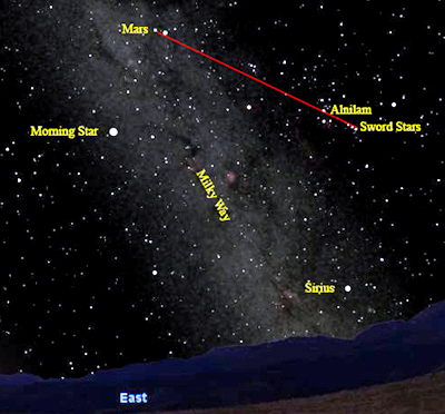 | The Alignment of the Sword Stars with Alnilam and Mars, Sunrise, August 10, 1678 |