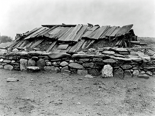 Shoshone (Shoshoni), or Snake — a Uto-Aztecan speaking people of the Great Basin region of Idaho, Utah, Nevada, and formerly Montana. They are called Šošóx by the Hōcągara. The Western Shoshone lived in desolate environments. The Gosiute band lived on the shores of the Great Salt Lake in Utah, and the Panamint lived in California's Death Valley. Pictured at the left inset is a Western Shoshone wickiup with examples of conical baskets. The Northern Shoshone are culturally akin to the Plateau Culture to their north. The most famous of the Northern Shoshone was the woman Sacajawea who acted as a guide and translator for the Lewis and Clark Expedition. The Shoshone began to have more extensive contacts with white Americans when the Mormons settled at Salt Lake. During the Civil War when the white Americans were preoccupied, the Shoshone raided Pony Express routes, wagon trains, stagecoaches, and cut telegraph lines. In 1863 California sent infantry against them in an arduous campaign that culminated in a battle on the Bear River at Bear Hunter's village in which the Shoshone lost 224 people. After this defeat, resistance crumbled. In 1869 the transcontinental railway was completed right through the territory of the Western Shoshone. The Eastern Shoshone lived in Wyoming and adopted the culture of the plains Indians, including living in teepees. Their principal enemies were the Arapaho and Blackfeet. The Eastern Shoshone allied themselves with the whites and helped them fight the Sioux, particularly in the Battle of the Rosebud in 1876. Nevertheless, they were forced onto a reservation with their enemies the Arapaho. Contemporary Shoshone have reservations in California, Nevada, Idaho, Utah, and Wyoming. Some attempt is been made to keep alive the Shoshone language. Mentioned in Commentaries: 1; Mentioned in Footnotes: 1, 2; Parallel Stories: 1, 2, 3, 4, 5.