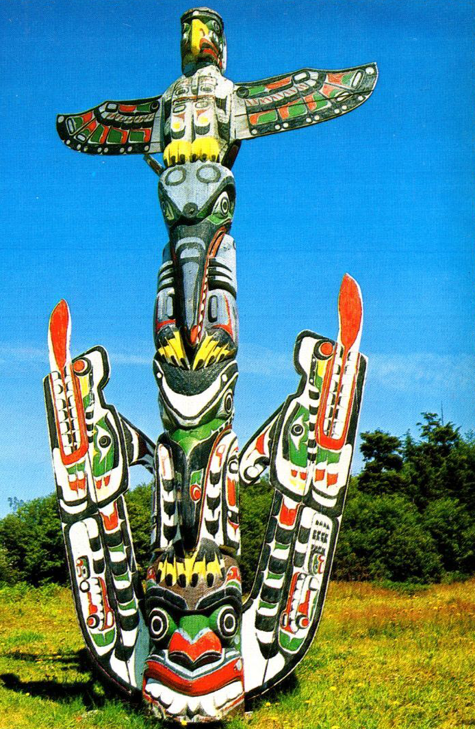 Tlingit — an Athabascan people of the Pacific northwest who occupy the southernmost part of Alaska that neighbors on British Columbia. In their language, which is related to Haida, their tribal name means "People." They fished and hunted sea mammals; but they also took terrestrial game. Members of a clan lived together in a village which they owned. There they built large houses using beams and wooden planks. They had a hierarchical society, that included slaves, and they performed the potlatch ceremony, in which wealth was ostentatiously given away. Position in the three recognized classes depended upon titles, wealth, and individual achievement. They also fashioned totem poles (as seen in the inset). They believe that a creator god, Kah-shu-goon-yah, made the cosmos and controls its fundamental features. Raven, a lesser trickster deity, taught people the institutions by which they live. The jek, or spirits, are found in almost anything. The jek could confer on people curative powers, wealth, war powers, and ceremonial status. The individual possess a mortal and an immortal soul, and upon death the latter would, if morally worthy, ascend to Kiwa-a, the highest heaven; otherwise, it would be condemned to Dog Heaven, where it was punished. In time, all souls returned to the living through reincarnation. In war the Tlingits used wooden slat armor and wore masks designed to terrorize their enemies. The Tlingit fought the Russians on many occasions, and sacked their greatest fort on Baraxou Island. Today the Tlingit are numerous, numbering 25,000. Parallel Stories: 1, 2, 3, 4, 5, 6; Mentioned in Commentaries: 1, 2.