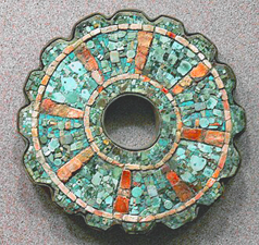 Chimú — a cultural phase succeeding the Moche centered around the city of Trujillo and the north coast of Peru. Their empire, which streatched along the coast from the Gulf of Guayaquil to Chanca, lasted from about 1000 AD to 1470. Just north of Trujillo, they built their capital city of Chan Chan that occupied 28 sq. klm. and had a population of about 50,000, making it the largest city in Peru. The city was also known for canals. Thousands of structures were made of mud with friezes worked into the walls, sometimes decorated with precious metals. The artwork generally was not on the level of the Moche period. The quality of pottery declined from the Moche phase, but mettalurgy progress with the use of bronze and fine gold work. Royalty were buried in great mounds accompanied by plentiful grave goods. Parallel Stories: 1.