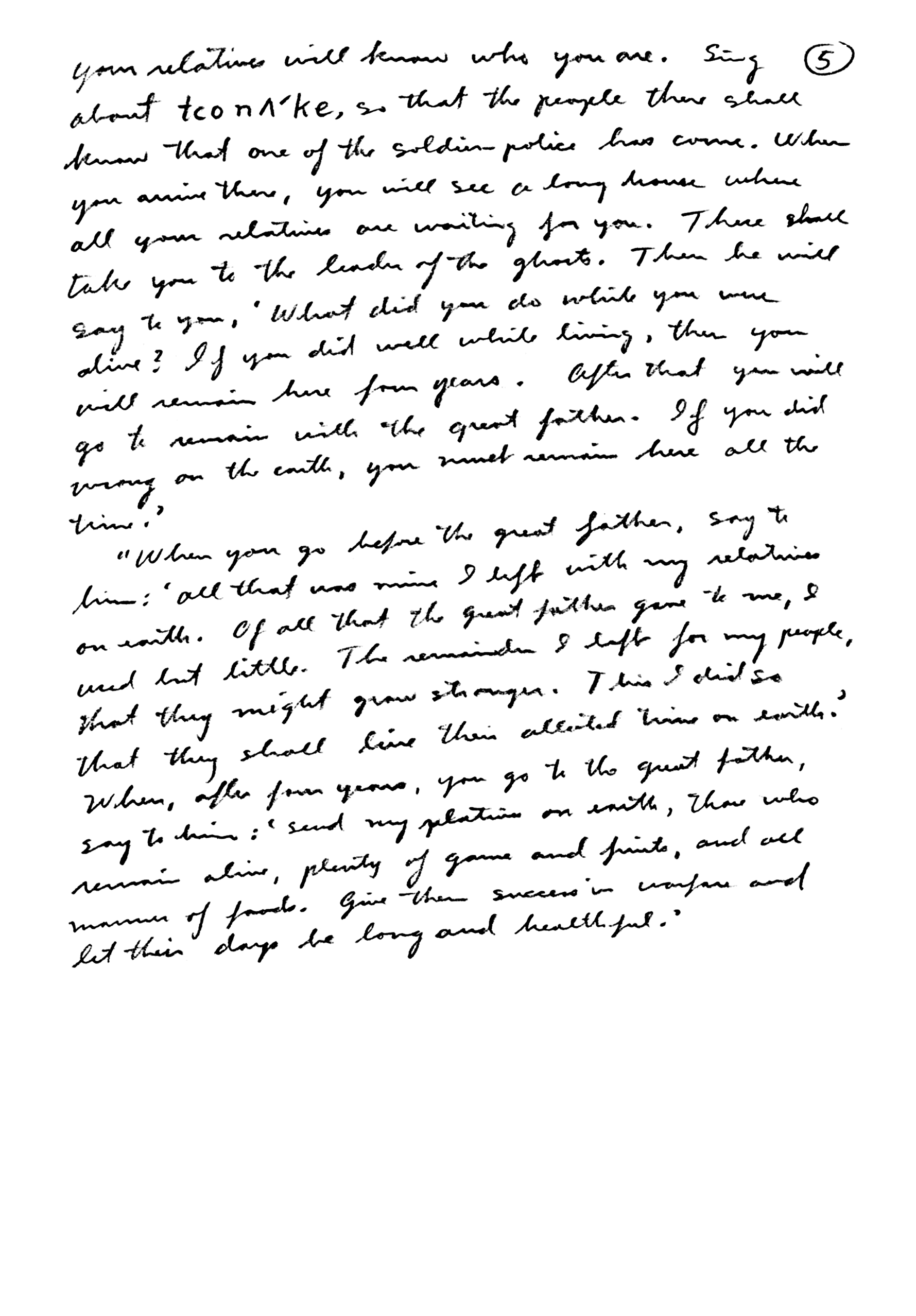 that of my parents. Soon I lost him, so I thought, our Great Father wanted me to live alone as I am, so I ask you, brothers, pity me, and do not ask for me. Try to help me out. I want to remain single, just the way I am, because that is the way God wishes me to remain. So pray for me, I ask you." So they had a meeting. She composed a peyote song that night. That is all.