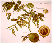 Yet, there may be a great deal more to it than this. Viewed from the standpoint of Hocąk symbolism, a rather different meaning is imputed to the story of an eating obsession. In the preliminaries to war, one of the rituals engaged in by a warparty before they go on the war road is the Fast Eating Contest. In this ritual, the premiss is that the eating of the meal, which is done as fast as possible, magically reflects what is to happen on the warpath. The food thus consumed is said to represent the souls of those who will be killed or captured in the upcoming fight, and any food left uneaten represents souls that have escaped. So in this context, eating represents the capture of a soul (living or departed). Therefore, swallowing is a form of capture. What is captured, we might ask, when one swallows a walnut? To answer this, we need to review the soul-symbolism attached to trees. Metaphorically, a person's descendants are said to be rejų́na, "roots." So, again metaphorically, if she has put out roots, then she has produced descendants. The roots extend from her legs, which in Hocąk is denoted by the word hu, which also means a plant's stem or stalk. So literally (in the story and in botany) the rejų́na extend from the hura. The two legs of a woman form a fork, in Hocąk, ca. This same word, as a homonym, is said to mean, "wife, friend," although Marino puts a question mark after this entry in her dictionary. Nevertheless, the connection is indeed made. In a work that has come down to us only in English, the Green Man is upset that someone has kidnapped his wife, but Big Bellied One admonishes him, saying, "Women are considered just so many forked sticks ... if you are that weak just pick another forked branch. ... I myself will go get a forked branch for you, as there is a whole forest of them out there. Don't do it [go after your wife], for it is a very shameful thing to have trouble over women." This homology brings us to the walnut itself. The stem ca- has an expanded form, cak, which also means "forked"; but in addition, it means "walnut." The walnut is therefore the forked tree par excellance. It is natural, therefore, that a woman who is a "forked branch" might become the "forked tree." So what is the nut in this scheme of metaphors? It is literally the seed of the tree, and her obsessive and exclusive consumption of it lead to her hura putting down rejų́na, or interpreted symbolically, giving birth. Yet it is from the seed that she gave birth. It is the physical seed that she took into her "mouth" (vagina), but the soul to which the allegory refers came from above. The taking in of the tree's seeds made her sprout roots, that is, descendants. Just as the name cak denotes bifurcation and therefore duality, the very nut which is the embryo is itself doubly dualistic. Like many nuts it is composed of two halves, but unlike many others, it has a husk and a shell, another duality. Hocąk marriage is between a man of one moiety and a woman of a complementary moiety. Someone from the Upper Moiety must marry a person from the Lower (or Earth) Moiety. The walnut drops from the sky, and lands on earth, where it grows in both directions. This fact by itself reflects the marriage of the Above with the Below, the two complementary moieties. That the embryonic plant is itself dualistic reinforces this analogy. Therefore, when she ate the dualistic cak, she captured a dualistic soul, the soul of a Ho-cak, made from the uniting of the Above with the Below.